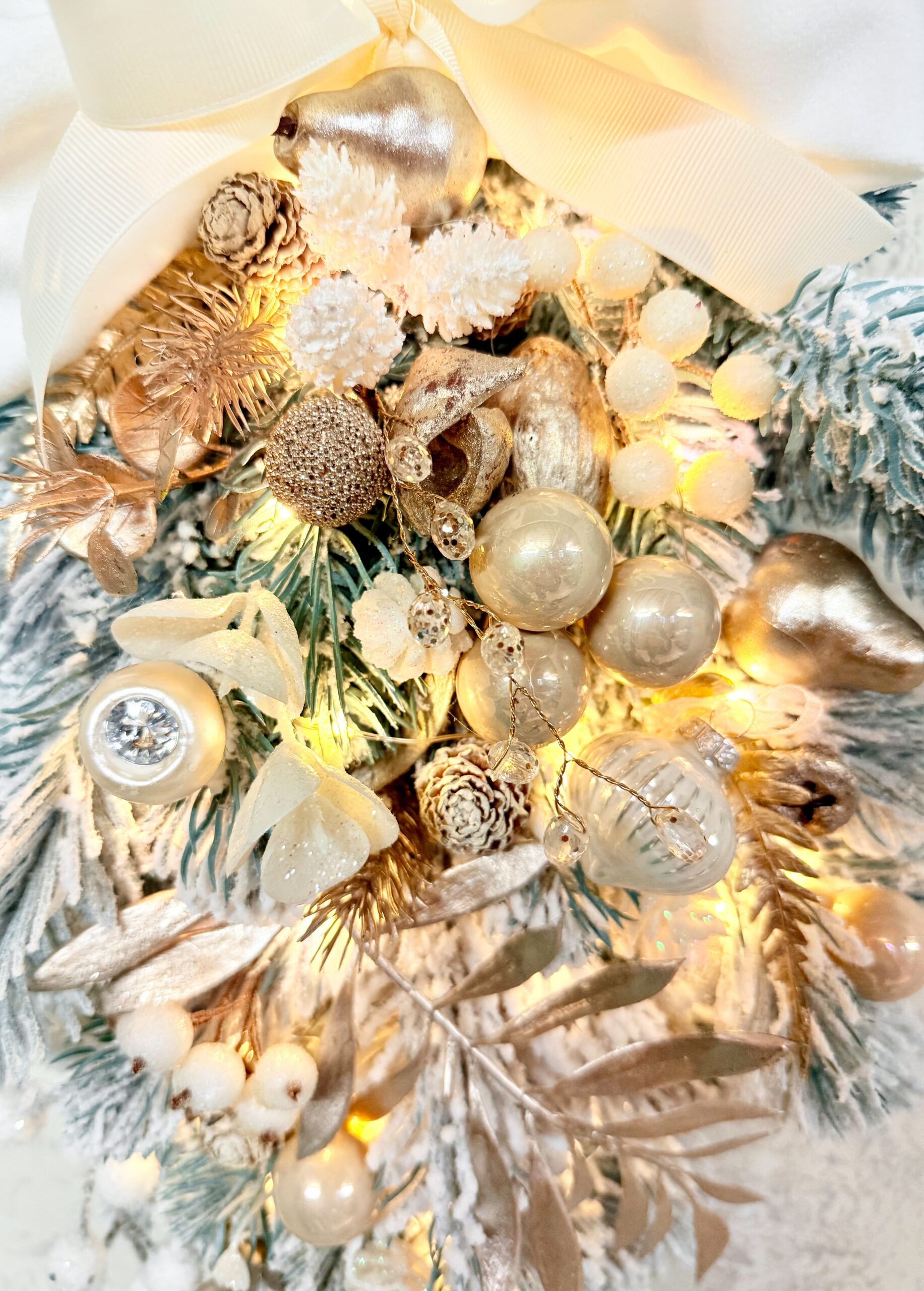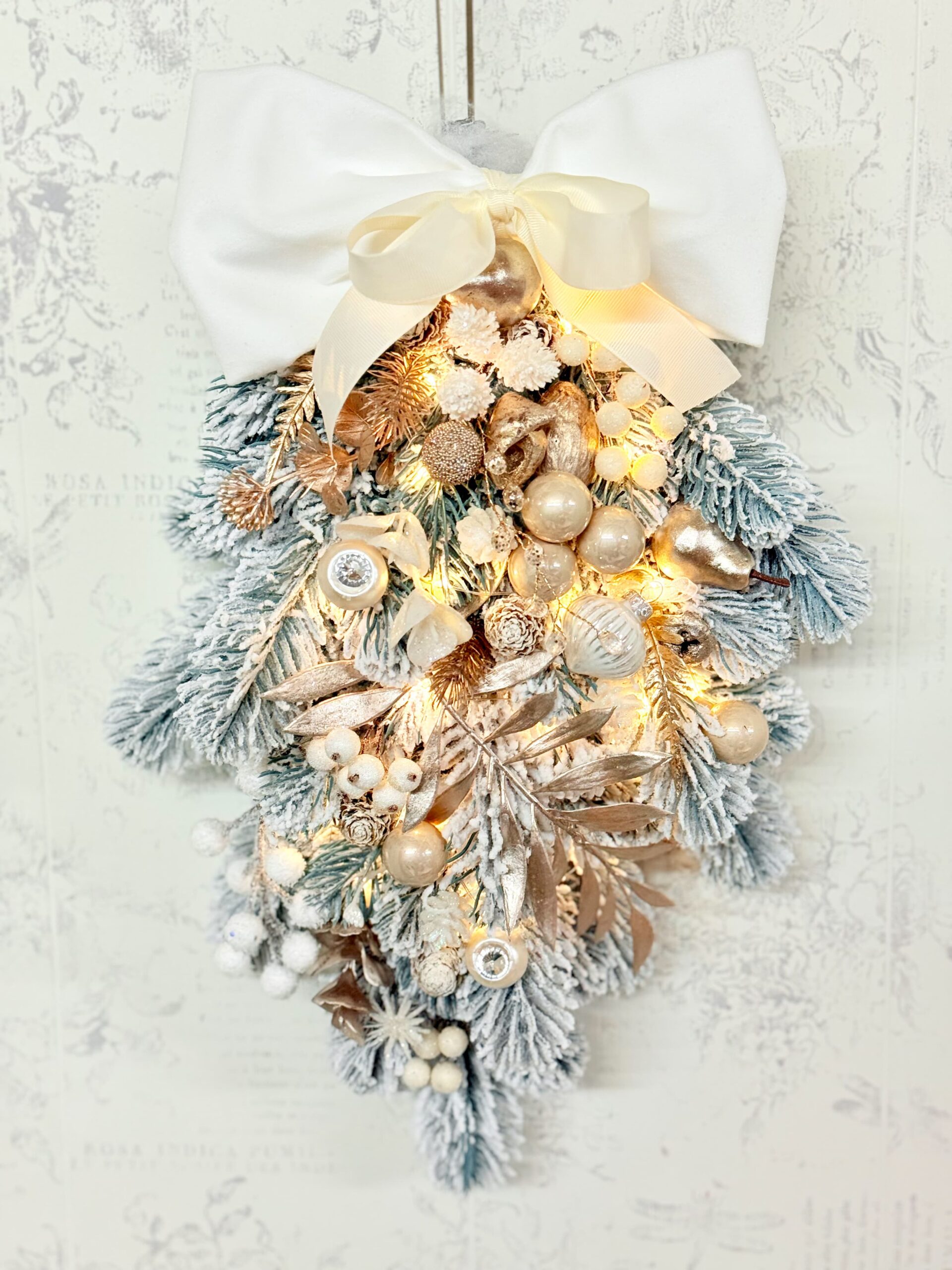 Transformă-ți intrarea într-un colț autentic de sărbătoare cu acest decor de ușă în stil cascadă, realizat pe o bază de brad artificial înzăpezit, bogat și realist. Cu o lungime de 58 cm, este suficient de vizibil pentru a crea impact, dar perfect proporționat pentru orice ușă sau perete.