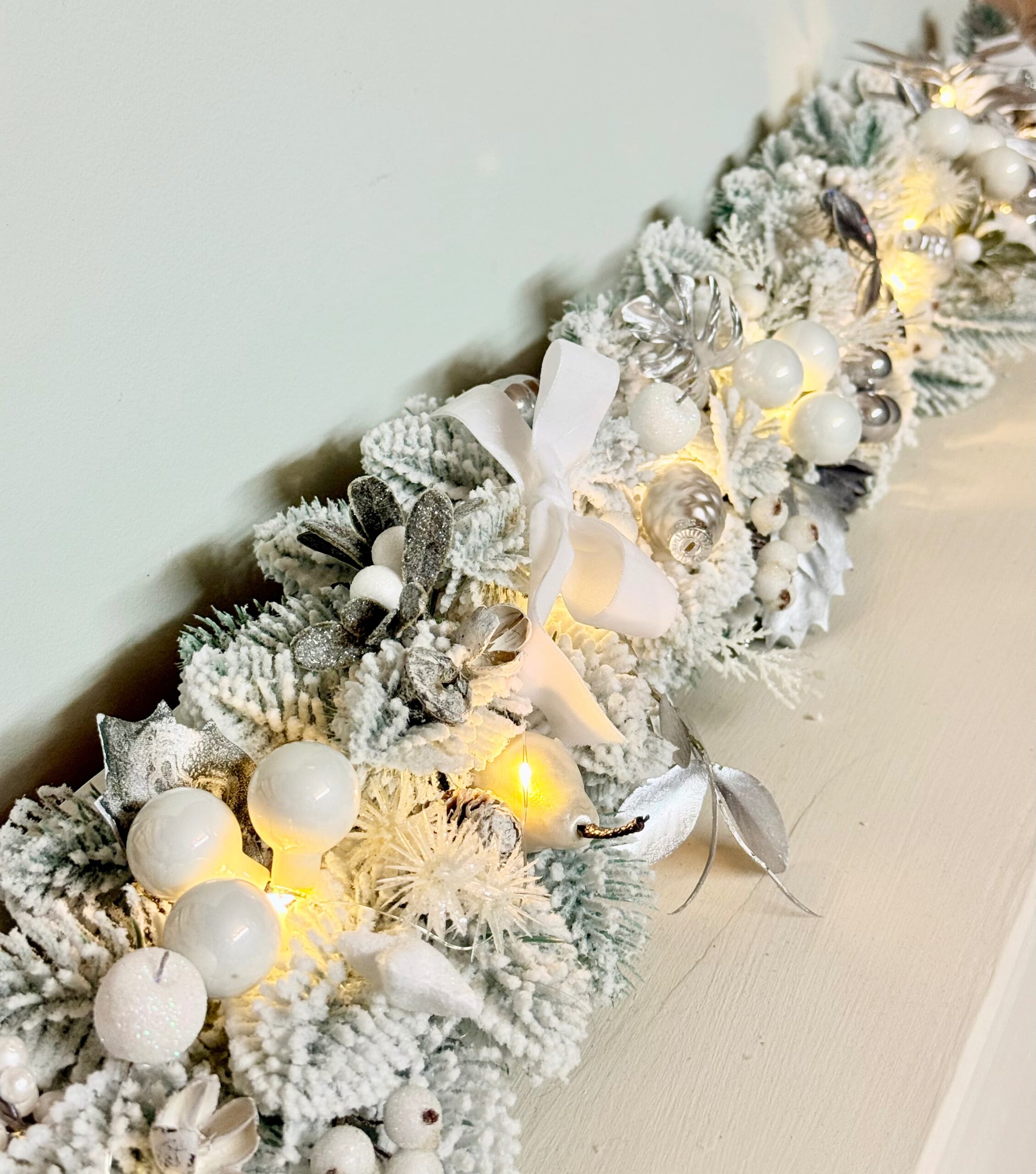 Ghirlanda este prevăzută cu o instalație cu LED-uri calde, care adaugă un plus de lumină și strălucire decorului tău, oferind o atmosferă plăcută și primitoare. Poate fi așezată pe masă, pe șemineu, pe poliță, la intrare sau chiar ca element central într-o vitrină de sărbătoare.